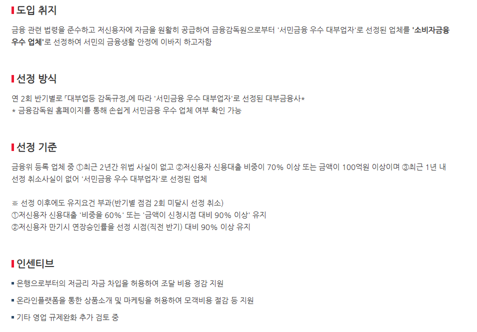 아래는 한국 대부 금융협회에 나와 있는 선정 기준입니다.